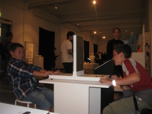 06.09.2011Heute starteten wir mit einem Forschergespann unseren Parcours durchs Festivalgelände. Trotz der unfreundlichen Wetterbedingungen ließen wir uns nicht von der Suche nach neuen Ideen abhalten. Unsere Aufmerksamkeit erregte vor allem eine Algenknödelmaschiene und ein Computerspiel der japanischen Tsukuba Universität.